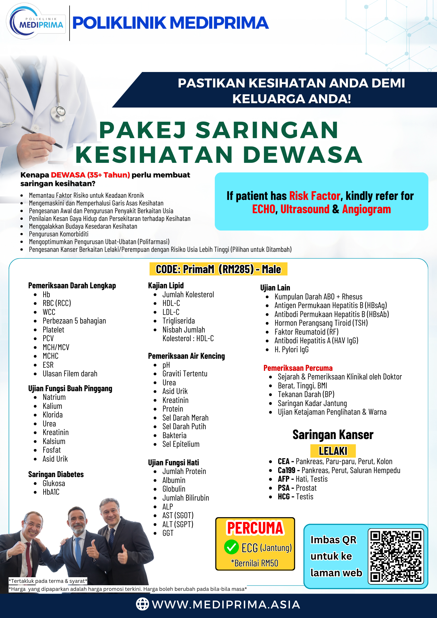 *Perlu berpuasa minimum 6 jam sebelum membuat pemeriksaan ini (boleh minum air kosong sahaja)
